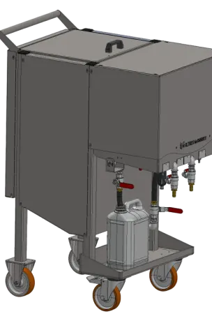 Der Koaleszenz-Entöler ist eine Lösung zur Entölung von Bädern, die mit Fremdöl verunreinigt sind. Dank seines Designs kann er fest angeschlossen werden, sodass er nur für ein einziges Bad verwendet wird, oder als mobile Lösung, die abwechselnd an mehreren Maschinen eingesetzt werden kann.