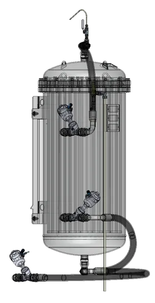 This filtration principle, with self-cleaning 5 µm candles, requires no additives. The candles are regenerated by counter-current injection of compressed air, and the purges are sent to a hydrostatic filter or a bag filter. As an autonomous technology, our Omicron plants require virtually no human intervention, optimising operating costs. The PLC is programmed by our in-house automation specialists, with developments tailored to your specifications.