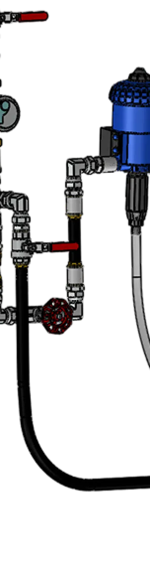 Utilizzando l’acqua di rete e un fusto di olio solubile, questa unità rifornisce un serbatoio con un’emulsione a concentrazione regolabile.