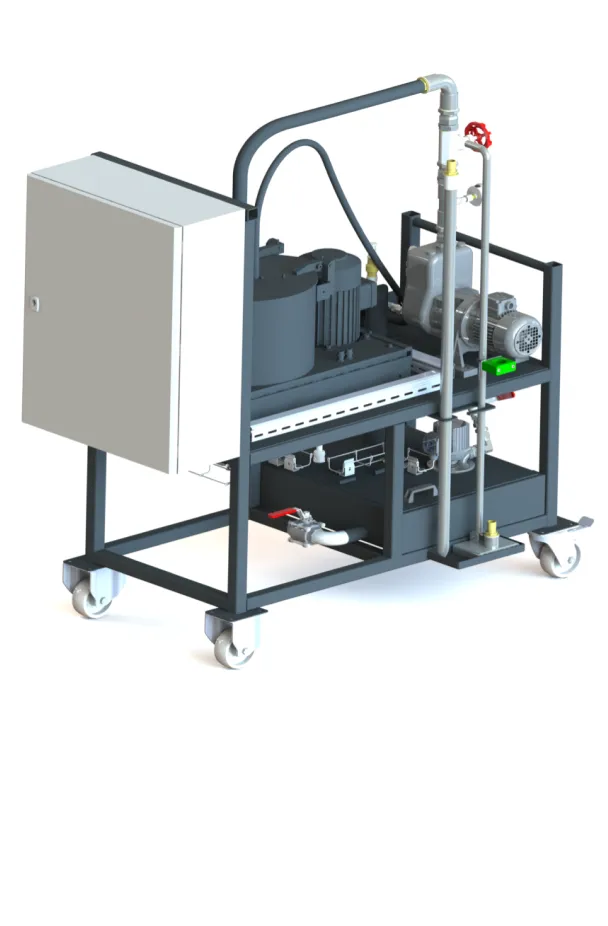 Sur le même principe de base que la version manuelle, cette version est complètement équipée pour fonctionner en toute autonomie et montée sur un chariot facilement déplaçable.